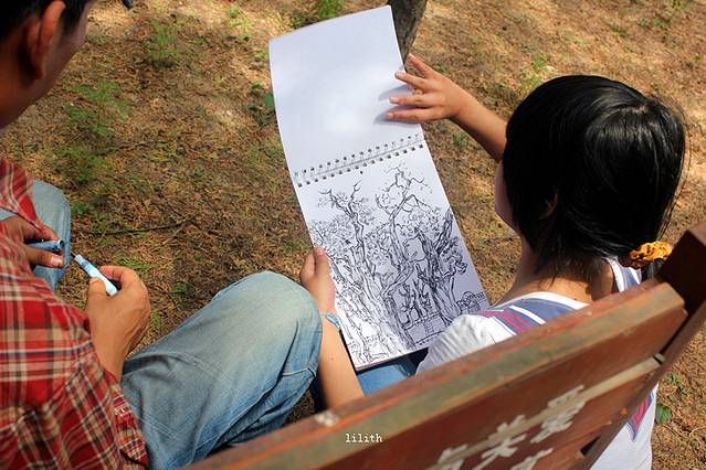很多人在这素描,都是钢笔画松柏,很有雅兴啊。