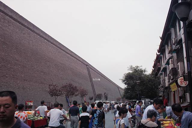 这天我们安排修整,因为第六天要去爬华山。一大早我们去了南门城墙,就在湘子庙旁边,上城墙40块,骑自行车1小时40块。由于太阳太晒,所以我们只从南门骑到了西门,大约40分钟,就从西门就下来了。在城墙上骑自行车感觉很奇妙,你可以看见城墙下的人流和车流,大概也只有西安你可以在城墙上骑车了,所以必须体验下啊。