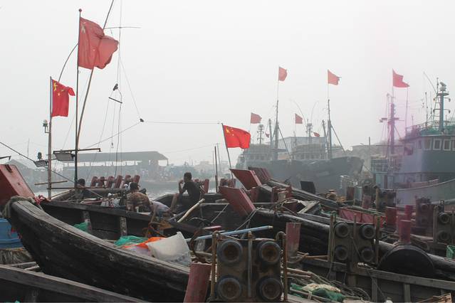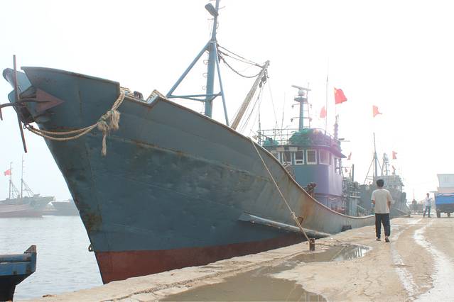 有船回港!!凑过去看看。。已经很多人在交易了!