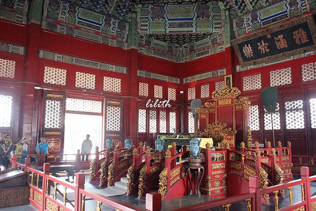 这辟雍殿是和珅修建的,整个大殿里一个柱子都没有,是在四个角里用三角形固定。