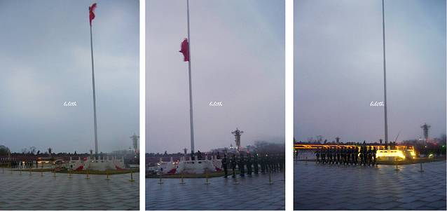 你可以到天安门地区管理委员会网站http://www.tiananmen.org.cn/index.asp,上看升降国旗的时间表,由于太阳升起时间不同,所以每天都不一样。