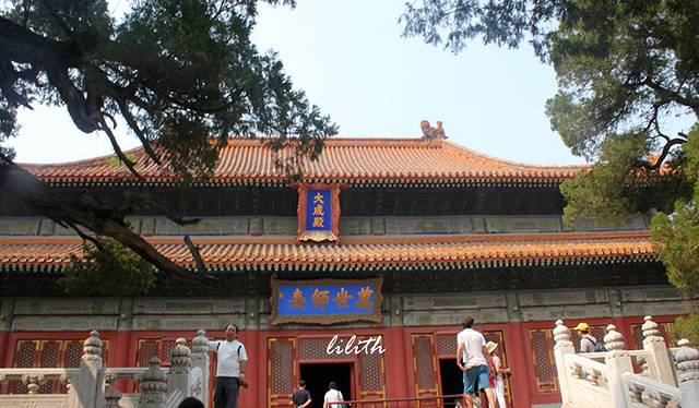 去雍和宫、孔庙国子监:之后到马路对面坐909就到雍和宫了。雍和宫是烧香的地方,门票25元,到这边烧香的人挺多的。我在里面请了个20元的香,依次烧香的。烧香也最好请佛寺里面的香比较好。并且有佛像的地方最好不要拍照,所以我只拍了大殿外形。