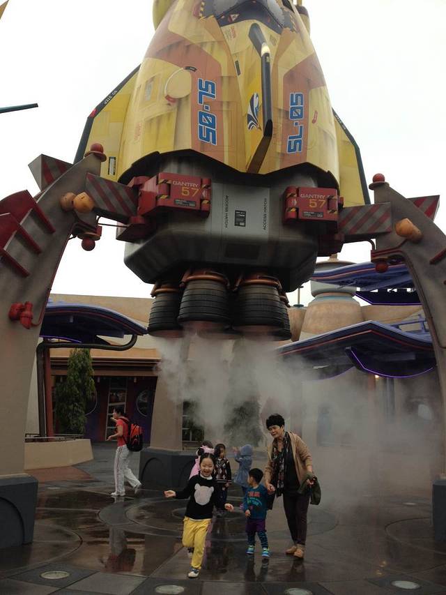 在火车上,遇到也是去迪士尼乐园的龙凤胎兄妹和他们的家人。原本想让他们睡觉的,不过挂着和小朋友玩,一路都没有睡。十二点火车到站,因为要出关,排队等计程车等,去到乐园的时候已经下午一点了。两头在计程车上睡得很香,刚好等下有精神可以玩了。