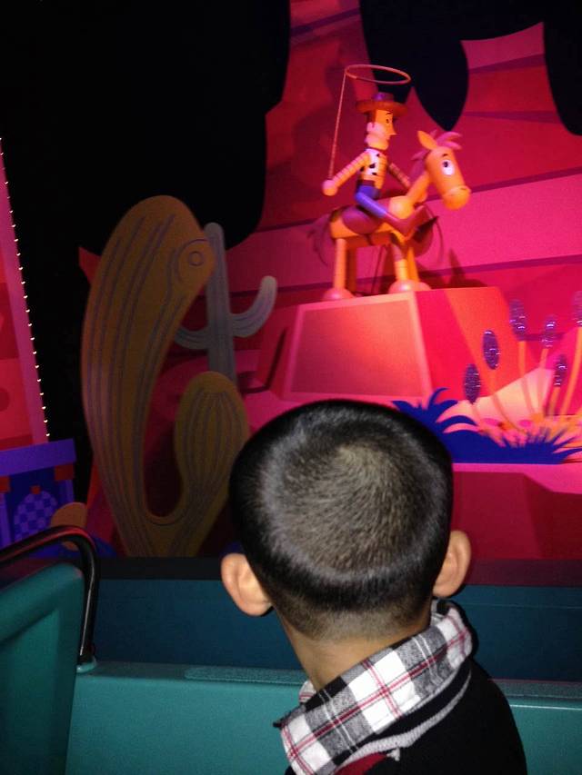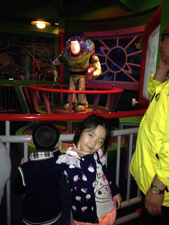 先去了斯光年历险星际历险,彬彬非常喜欢,和爸爸帮巴斯光年一起打怪兽确实挺适合男孩子的。