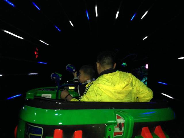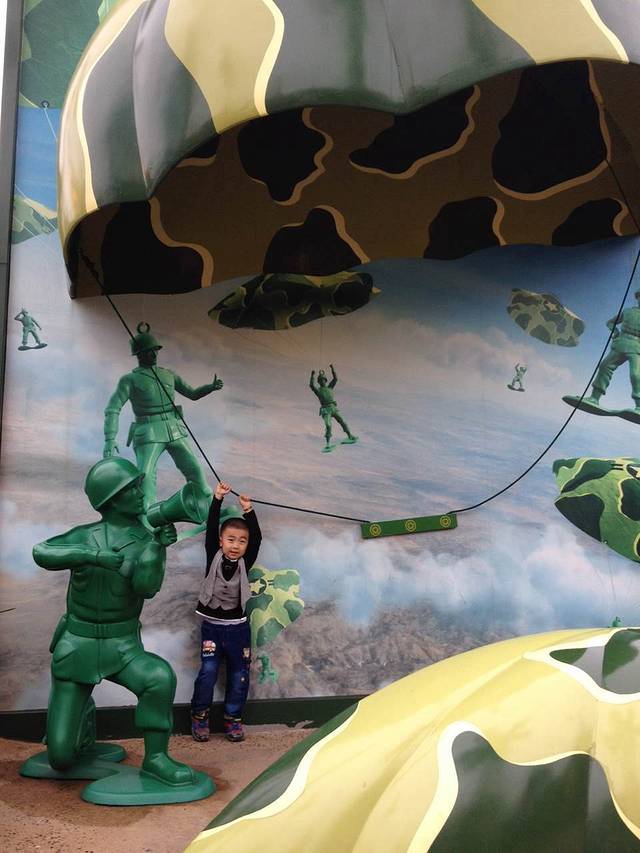 玩弹簧狗也有一段小插曲。我们一家四口坐在了一个格子里,结果过了一会儿有工作人员过来说一个格子最多只能坐三个人,轩爸问谁同他坐其他地方,结果两头都不愿意。最后,轩爸一个人灰溜溜的走了,哈哈。