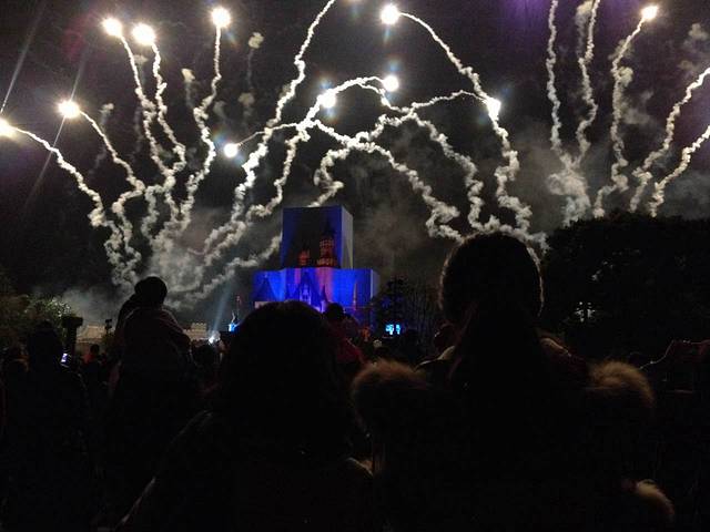 烟花真的很漂亮,尤其选择在睡公主城堡的上空,很梦幻的感觉!很棒!