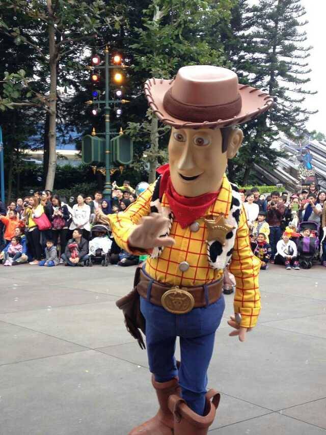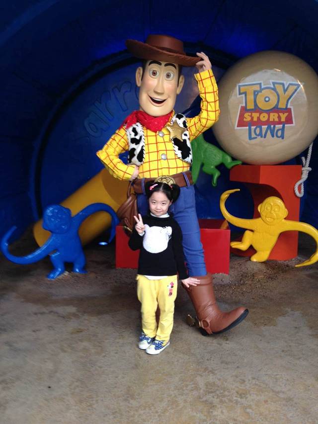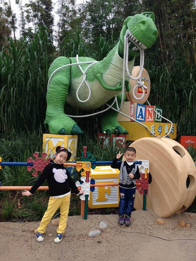 一进门,刚好看到有公主在同小朋友拍照,轩轩开心的不得了,我们急忙去排队。工作人员告诉我要拿预约卡才可以排队的,我和轩就去到指定的位置拿预约卡,为了节省时间,让轩爸拿着门票去FP小熊维尼。好不容易排到了,只可以拿下午5:00的预约卡了,那时我们已经在火车上了。轩为此伤心的哭了起来,我说要不然我们在外面这里帮你和公主拍一张照片好不好,她不肯。她爸爸有些不理解,为什么女儿会这么不开心,我告诉他每个女孩儿心中都有一个公主梦的,不能和公主拍照对轩轩来说是很沮丧的一件事情。好在轩很快的调整过来了,在去反斗奇兵大本营的路上,就又和彬有说有笑了。