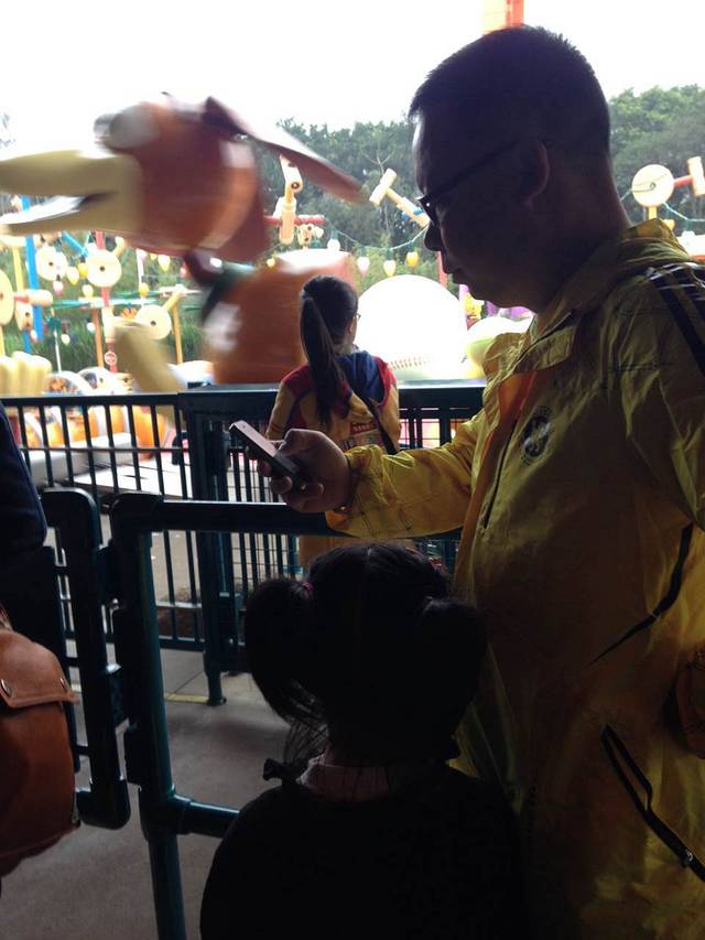 不过排队到一半时发现如果玩完这个就来不及看音乐剧了。我和轩爸说我们不排这个了,先去排音乐剧。当我们退出排队赶往音乐剧场的时候,发现轩爸还在那里认真的看手机小说。我们没叫他,三个人一路小跑去排队了。
