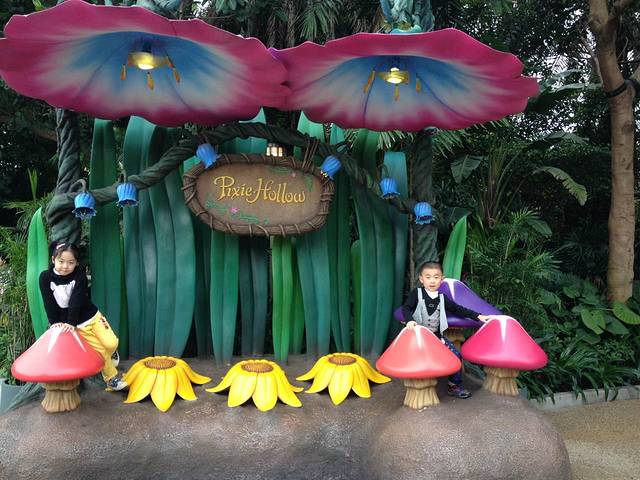 出来在梦想花园转了下,不过和人物拍照的队伍都挺长的,我们就放弃了。