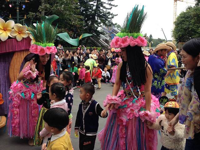 巡演的队伍很壮观,出来的都是小朋友们耳顺能详的人物。最后巡演的队伍停下来又唱又跳的,还邀请旁边的小朋友们一起参加。两头也加入了进去,玩的很Happy。