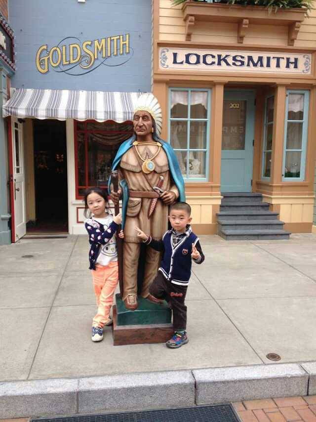 先到酒店Check in,不过要下午3点才有房间,于是补了些差价,换了海景房。两头对酒店很满意,说到处都有迪士尼的小动物,连电话上都有呢。我办手续的时候,轩爸带两头去走了迷宫。到房间给彬换了薄一点的裤子,给轩也脱了件毛衣,放下行李,就出发了!
