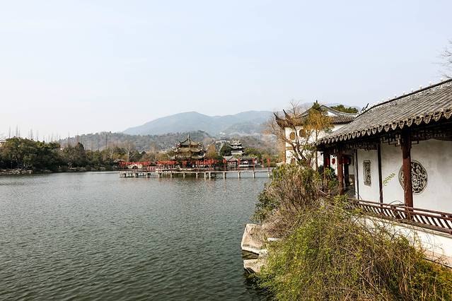 湖分前湖和后湖,湖中有洲渚。洲上多亭阁。前湖月堤上“浣月洲”居全湖中心,后称“樵云阁”。其南又有湖中洲。洲上建有“湖心亭”。亭阁三层,飞檐八出,高瓴流瓦,翘角滴翠,气度宏伟,构造精巧,为全湖览胜之佳处,古今游者留下颇多诗词对联,如“四壁云山天上下,一亭风月水中央”、“四面轩窗宜小坐,一湖风月此平分”