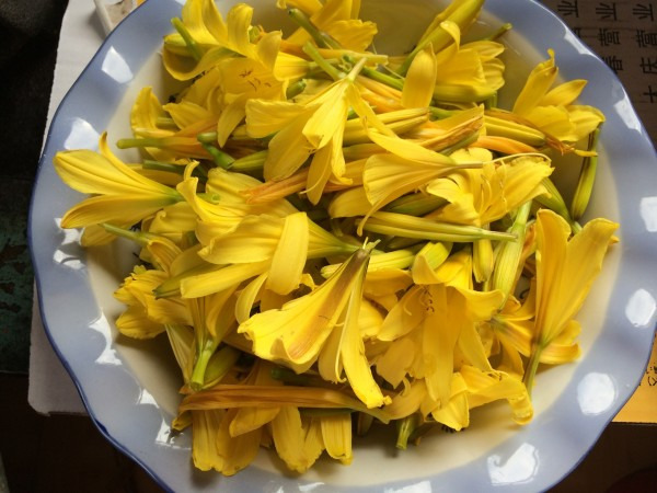 我刚刚在河边拍照的功夫,贤惠的二嫂为我们采了黄花菜,也是今天的一道菜