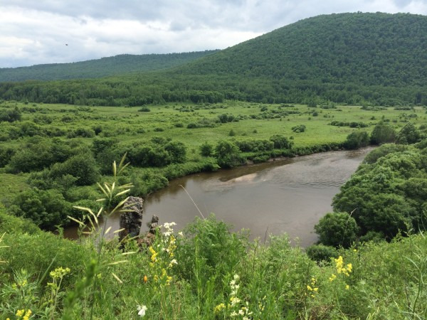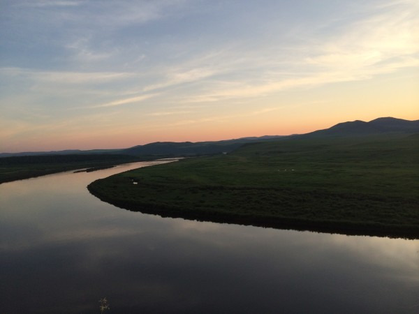 快要到达满洲里机场时,透过舷窗拍到的照片,下面弯弯曲曲的河流流淌在满眼绿色之中