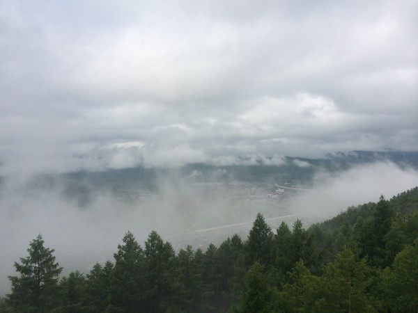 黄师傅把车开到山顶。俯瞰,莫尔道嘎小城笼罩在云雾之中,远处是很美的云海