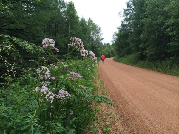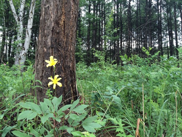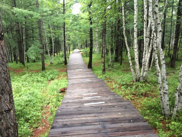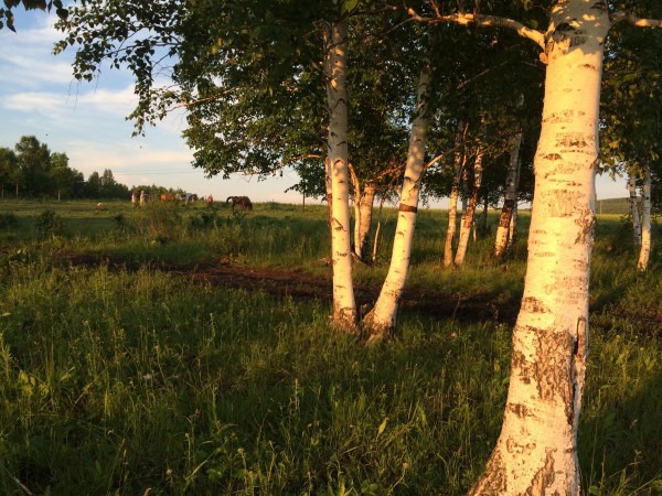 雨后空气很是清新,雨水洗刷过白桦、松树那么青翠。山不是很高,我想走路下去