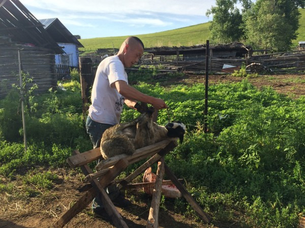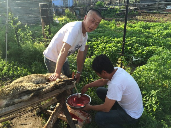 前两田黄师傅就帮忙联系,说到临江让永哥宰一只羊