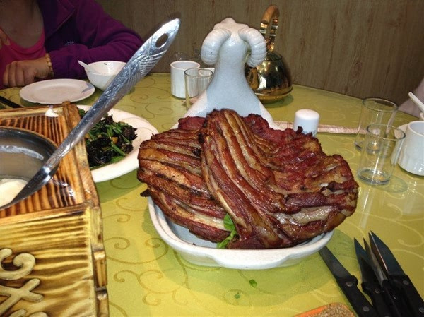 呼伦贝尔是内蒙古的一个边境城市,与蒙古和俄罗斯接壤,所以饮食特点除了保持蒙餐的特点外,还融合了不少异域风情。呼伦贝有有着世界四大草原之一,盛产的牛羊肉质鲜美,要说最具有特色的美味,烤全羊、烤羊腿、涮羊肉、炖牛肉、手扒肉......各种牛羊肉的料理绝对让你垂涎三尺。除了在海拉尔、额尔古纳等主要城市具有发达的餐饮业,金帐汗蒙古部落等草原上的旅游景点,也都有地道的牛羊肉菜肴可以享用。不妨与草原来一次近距离接触...