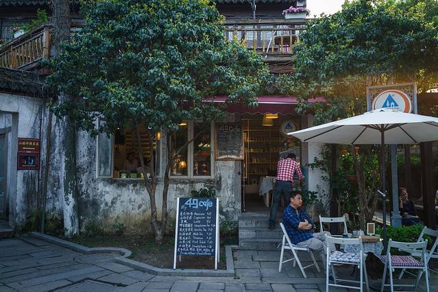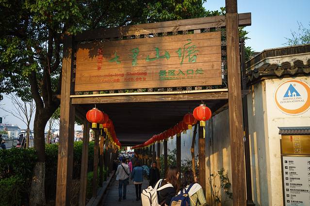 逛完留园,已经是下午五点多,比较科学的路线是再去逛山塘街。山塘街跟乌镇其实差不多,算是迷你版本的乌镇吧。走过去1500米左右,不是太远。我主要是为了拍苏州人文照片。对摄影不感冒的请直接打的或者坐公车。留园门口就有