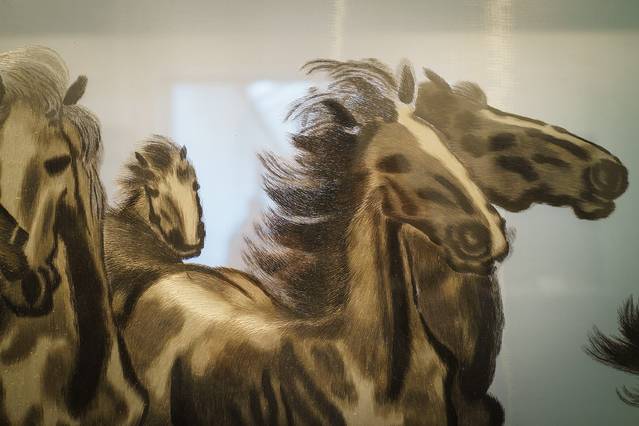 苏州博物馆——苏绣,马毛的方向跟质感全部绣出来了。活灵活现,跃然锦上!