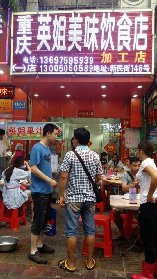 重庆英姐海鲜,在新民街147号,好像有两家店,味道很好,老板娘也很热情,就是第一市场的环境有点儿不好,不过没关系,味道已经代表了一一切啊.....