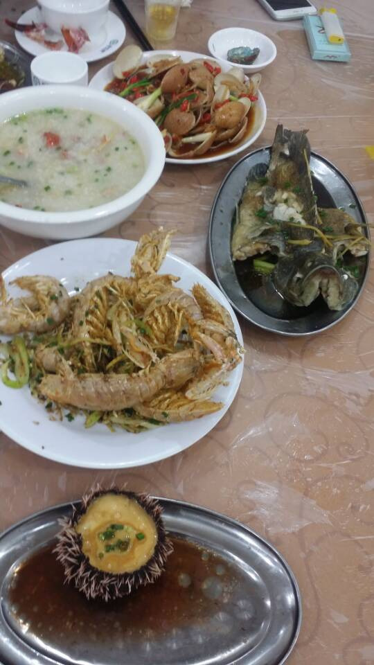 下午已经最快的速度办好入住手续,然后洗澡,更衣正午12点,就打车去了天涯朋友们多次提到的第一市场,那边都是自己买海鲜然后找饭店加工,我们是找的在网上早就物色好的重庆英姐海鲜店,我门和小妹在里面用了20分钟挑了6种不同海鲜,话说第一市场的龙虾不是一般的大啊,价格180-380的不等,我们挑了个小点儿的的大龙虾熬粥,到了三亚,卜吃海鲜就枉此一行了