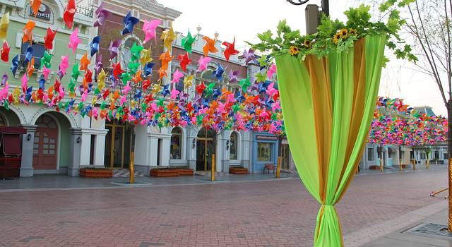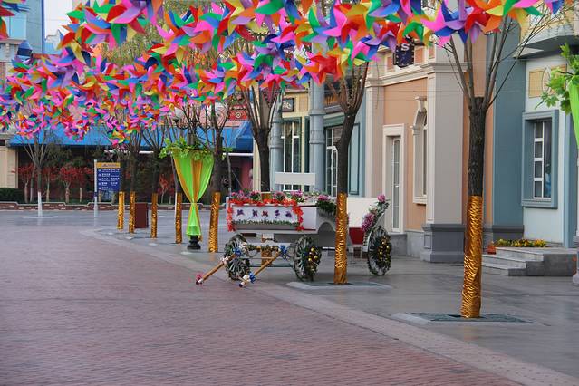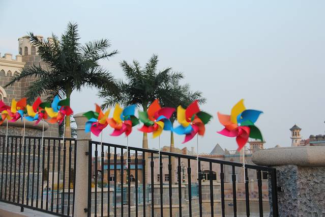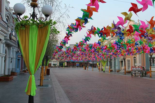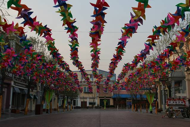 更值得一提的是,听说,本次清明节天津方特欢乐世界的主题是“梦幻风车节”,一进园区就看见大大小小五颜六色的风车,迎着风急速旋转,真的很美,再加上迪士尼风格的园区建筑,使整个园区的童话感更加鲜明,颜色更加多彩艳丽,非常适合情侣和亲子游。