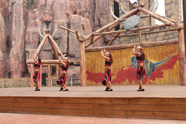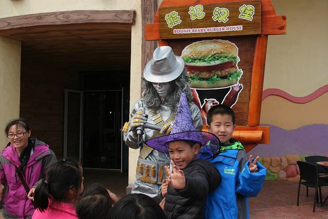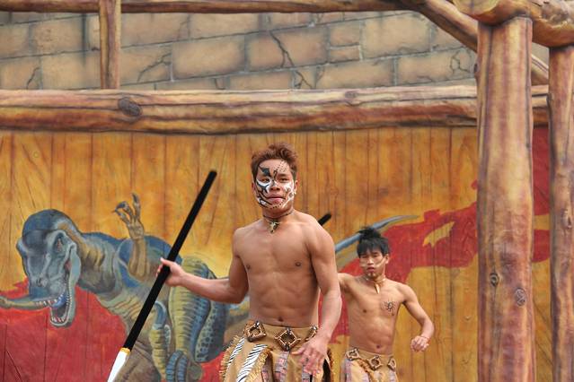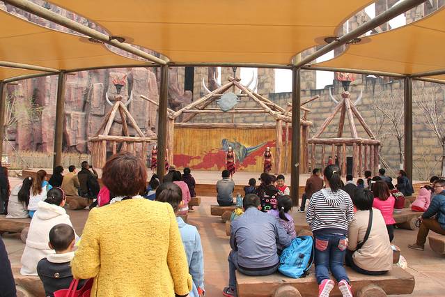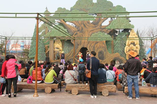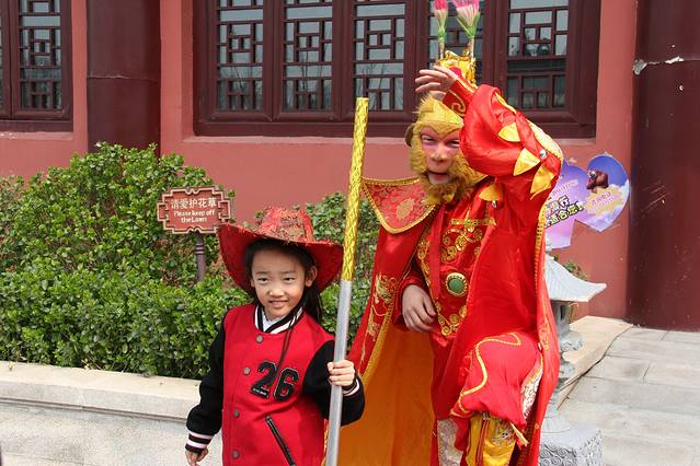 每个舞台上都有节目在表演,尤其是在《西游传说》项目门口的《美猴王》的真人表演,真的是惟妙惟肖,跟电视剧里的人物形象非常接近,一举一动都颇有六小龄童的风范。
