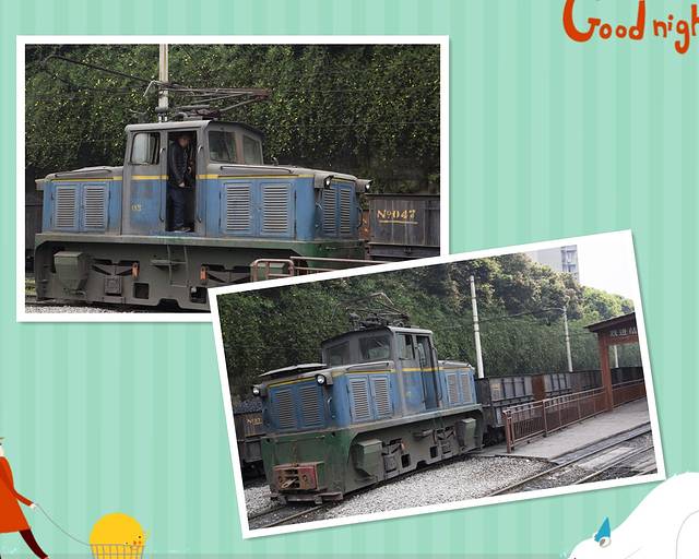 过了会儿,又有一辆拉煤的车驶进站。这列火车的车头竟然是电力车头,不过车头小得可爱,看上去驾驶员的身高与驾驶室高度差不多,驾驶员下来后我专门走近打了个招呼,注意到这位驾驶员的身高不到1米7,可见火车头有多么小。