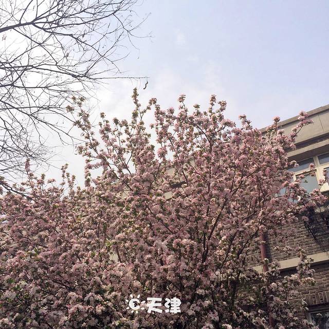 海棠盛开的季节,五大道并没有很多这样的角落,也没有像北京元大都公园的美妙,但搭配边上的古建筑也算得到了升值。