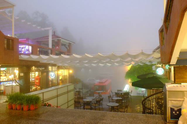 在九份留一宿后,第二天早上就開始下雨,一次性雨衣派上用途了。感覺這天都是在台鐵、高鐵和車上度過,因為達到清境都已經差不多五點了,山路曲折,從台中高鐵站到清境也要1.5小時,交通方式是拼車,提前打電話到民宿預定,每人350台幣,這錢是省不了,因為在台中去清境直達車很少,一般都要到埔里轉車,浪費時間又疲倦。車子從上山開始就很大霧,能見度大概只有5米左右,看到這樣的天氣很真有點失望,旁晚還來了個地震,嚇到整個人都不好了,連吃飯的胃口都沒了,原計劃參觀的小瑞士花園都只是進去不夠1分種就出來,回民宿了實在太可怕了。