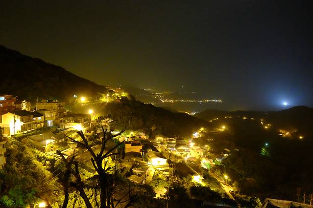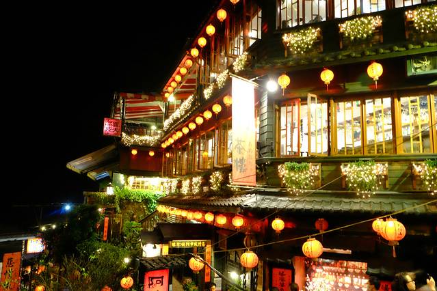 九份的夜晚確實少了很多人流,但很多的店鋪的關了,阿妹茶館是慕名而來的,千與千尋的澡堂湯屋的原型,因為不好喝茶所以沒在裡面消費,但晚上確實挺漂亮的。