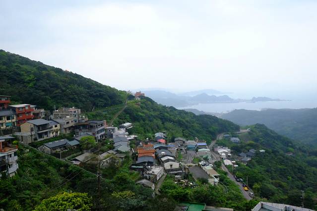 瑞芳——九份山城,我們是打算留宿,提前1天定房間,可以打電話到民宿幫忙訂車上山城,費用是50塊,其實挺划算的,台灣民宿基本都有這個服務,如果對交通方式有什麼不明白都可以打電話過去問的。瑞芳到九份,一路上來都是山路,急彎多,不得不佩服司機的車技。