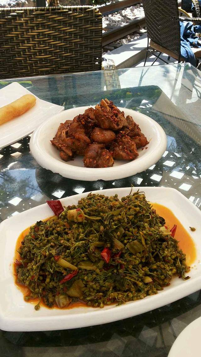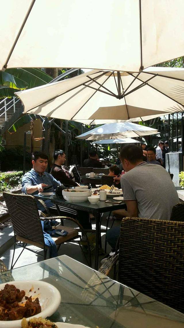 正确的时间是4月4日,放清明节第一天,和男友接近十点才出门,乘万能的k12在东寺街下车。下车已经十一点,刚好到饭点,而且发现1910火车南站(网上很火的本土餐馆)就在附近,就决定过去吃午餐。我们两个人一共点菜8个,消费180。我们没有点什么大菜,主要是些特色小吃……点大菜的话消费会更高。一根金条一碗稀豆粉(7元),金条就是油条,稀豆粉是豌豆粉做成的,油条做得外酥里嫩,口感很好,但是吃多了会腻。稀豆粉配有一碗调料,里面有小米辣、葱姜蒜,把调料倒进稀豆粉里,油条沾着吃。麻辣小猪脚(45元)不是特别出众,猪脚卤煮得很软,之后回锅的调料觉得味道不够重!樘梨花(25元)的口感很特别,入口很生涩,不像其他蔬菜的口感滑嫩。小份传统汽锅鸡(15元)分量很小,只够1人吃,其实也就是鸡汤,有几块鸡肉,个人觉得这道菜很鸡肋。半打滇菌圃团(6个,30元)还不错,类似锅贴,馅多,味道还可以。小锅米线(15元)量足,味道酸辣,个人觉得很一般,虽然是第一次吃小锅米线。干煸洋芋丝干巴菌(38元)是我男友都比较喜欢的一道菜,量足,最后吃不完还打了包,因为都很喜欢!整体吃下来,最满意的是干煸洋芋丝干巴菌和金条稀豆粉!餐厅环境不错,我们坐的外面,很有情调。
