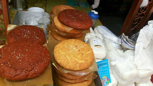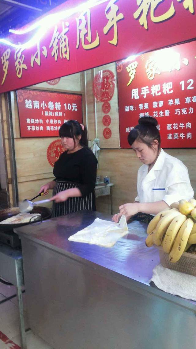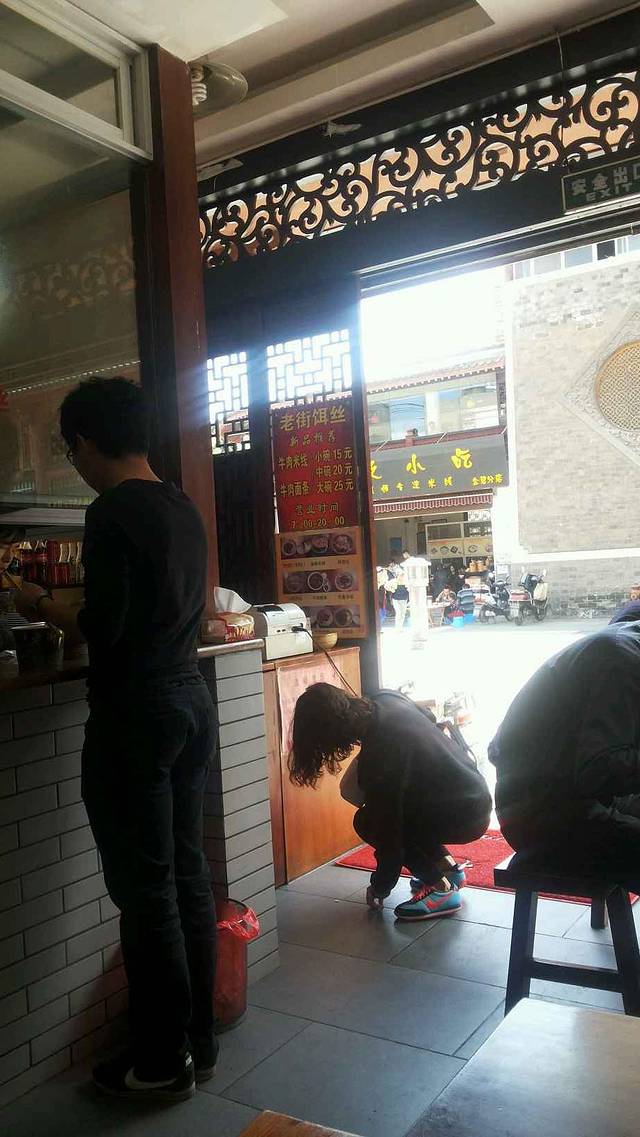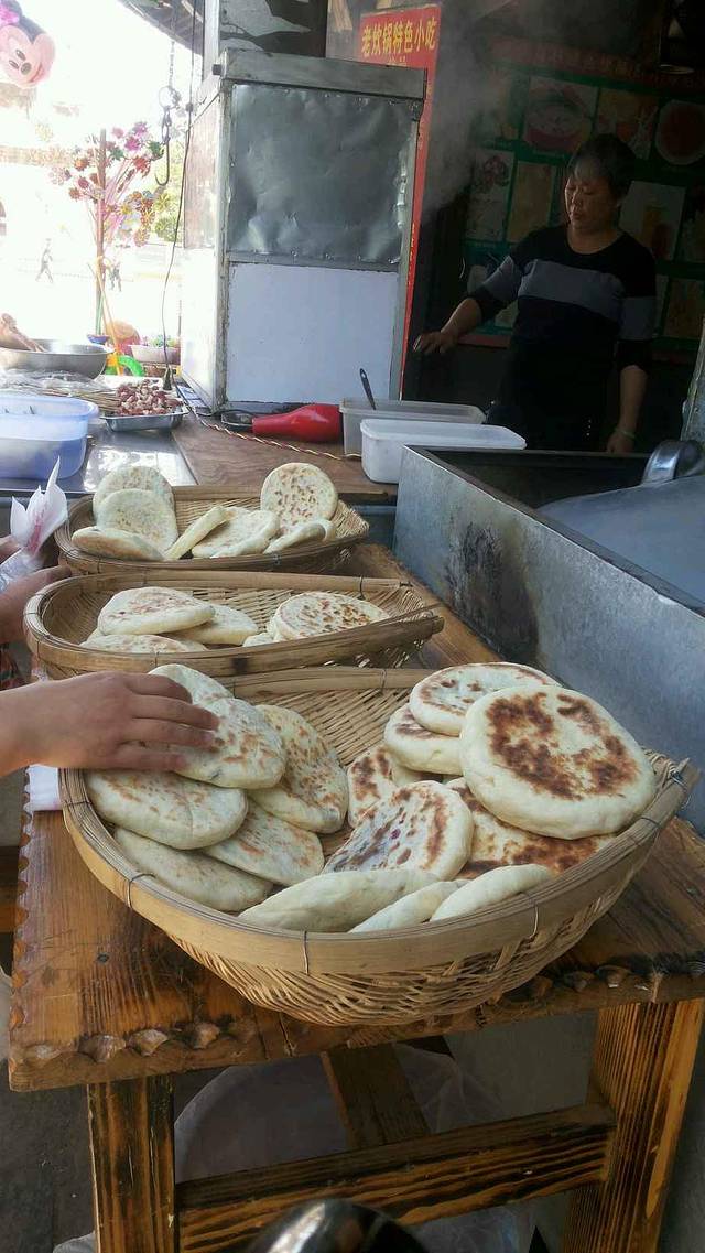 4月3日上午十一点才从牛街庄出发,去官渡古镇。在经牛路口坐c12到官小路口再倒169路,到的时候已经十二点过了。古镇很小,人不多,此次去官渡古镇,只为一个目的,美食。美食只为两家,眼镜粑粑和云南小八碗。但刚好当天是我的轻断食日,不能乱吃,即便吃不了,看看尝尝也好。从牌坊进去,走一会儿,路东就会看到大名鼎鼎的眼镜粑粑。两块五一个,买了两个,玫瑰的和糊麻的。个大,现做出来的,很热,很软,特香,性价比高!尝了一口就提着了,打算带回去第二天吃(第二日早上把糊麻的馅都吃了,超级喜欢糊麻的馅)。