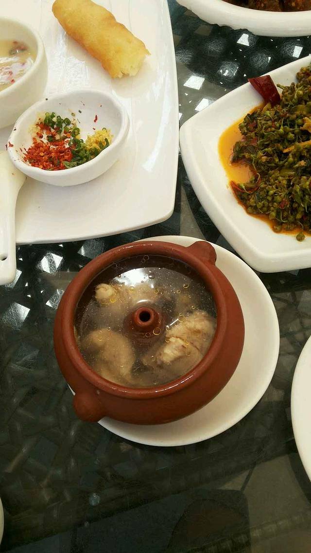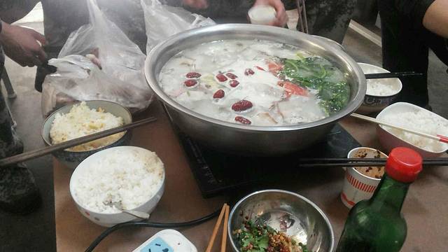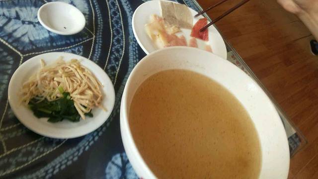 4月5日,没出门,就待家里了,但还是没少吃!早餐吃了食堂的面,鹌鹑蛋,大苹果,核桃,开心果,桂圆干……中午就吃的食堂的饭。晚餐是他们打包回来的酸菜猪脚火锅,其实就是汤锅,清汤,不是一个一个的猪脚,是猪腿肉切的一片一片的,有一点酸菜,汤白,怀疑加了牛奶之类的,不是正常的白,调料是干辣椒面之类的,但加了鱼腥草,自己往调料里加汤,不油是优点。肉是卤了的,主要是瘦肉,自己放锅里煮,自己可以选择要几斤肉……七个人要了四斤肉!!!最多吃了一半!犯罪呀!吃下来觉得味道很普通!!清淡不油是优点,适合冬天吃。