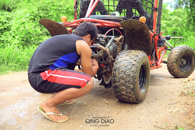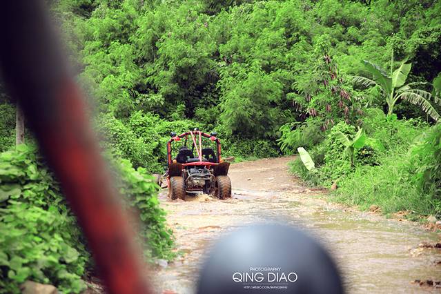 上山是需要由小黑带路的哦,他们除了给你带路外还需要保护安全,另外还可以帮你拍照,当然小费也是必须的。由于昨晚下过雨,路上好多积水,而且这车前轮没有防水板,油门稍微快点就会溅到身上都是泥,好吧!身上倒是次要,关键是我的相机啊。。。不防泥。。。