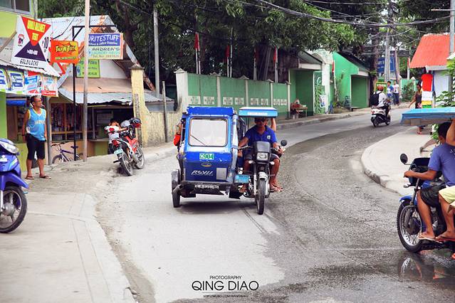 今天醒来第一件事就是换酒店,早上吃完早餐整理好行李退房。由于在岛上要待好几天,所以换二种酒店尝试下,在住第一家酒店时我们已经把第二家酒店的路给摸熟悉了,所以退房直接拉着行李过去也不是很远,走路大概七八分钟的样子,可是那主路真的不好走,坑坑洼洼的,晚上下过雨路上还有好多积水,还是坐TUTU过去吧,这么近的路60PHP,感觉比上海TAXI还要好挣嘛。