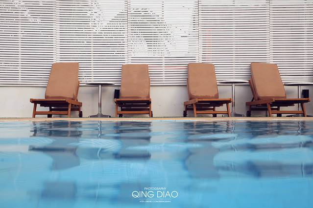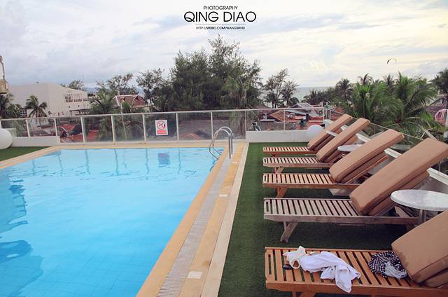虽然不是无边泳池,还是可以隐约的看到前方的大海。