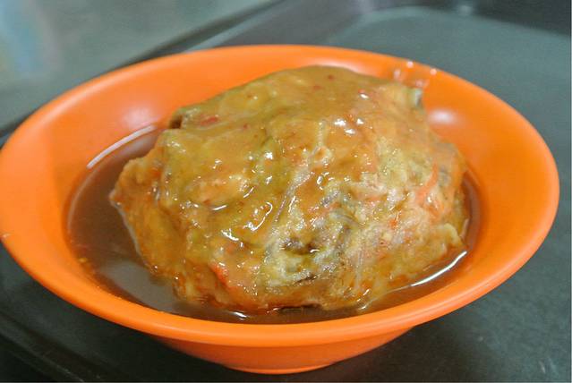 夜市走到头有一个摊子蚵仔煎生意很好,我们点了一个味道真的不错,蛋很脆,蘸着酱吃很好吃。