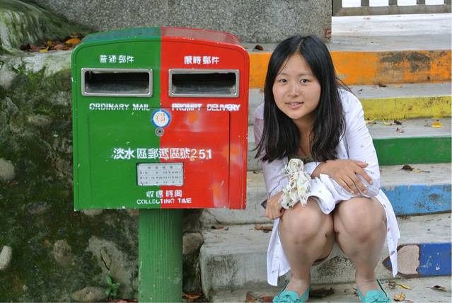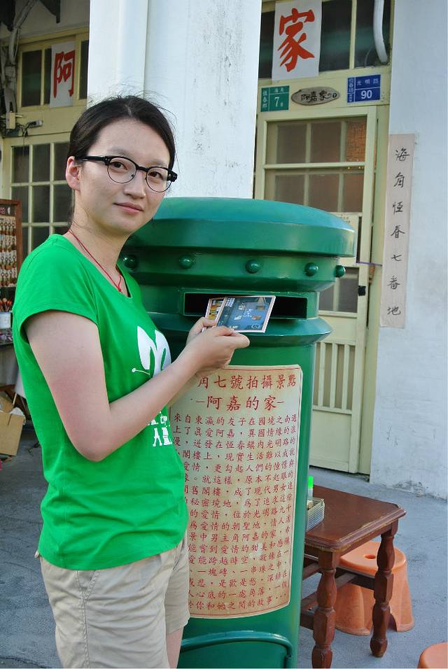 这个手工冰棒很多口味,买好可以在店外的桌椅上写明信片吃棒冰看风景,写完去店里盖邮戳就是淡水的邮戳了,在刚刚的信箱旁边有个绿色真邮筒,投进去就行了。在台湾大家都很nice,吃棒冰的时候碰到一个老外和我们打招呼来着。