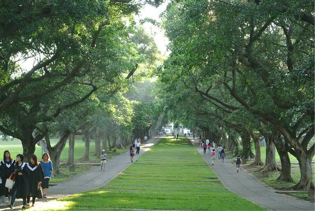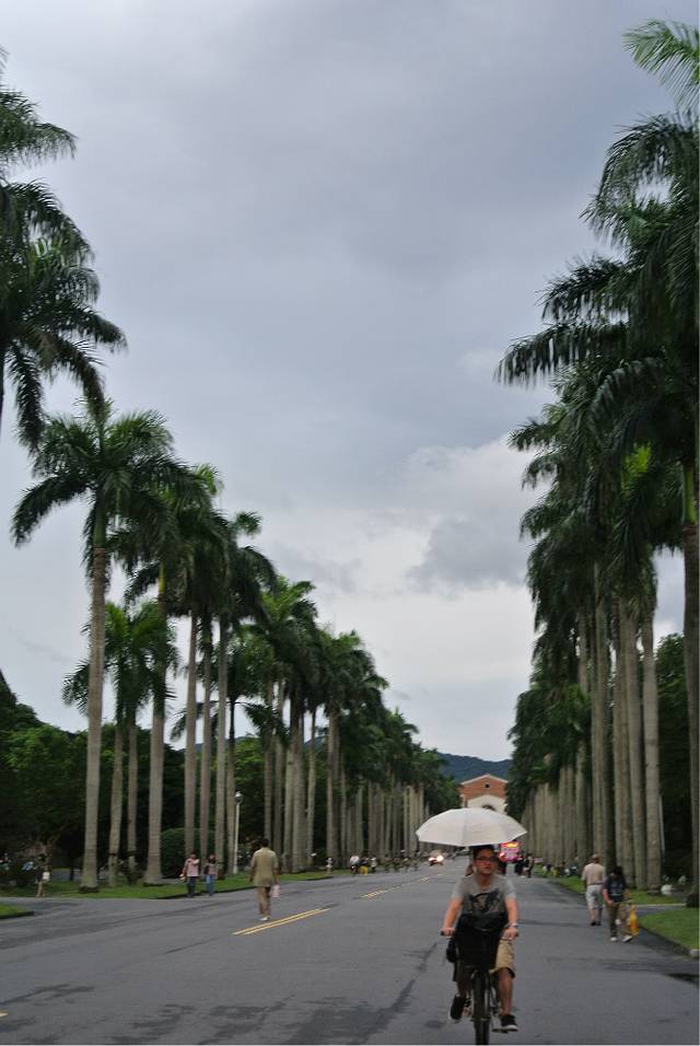 是时候找夜市了,准备去师大夜市的,然后发现台大也在附近就一定要去啦。台大是在捷运公馆站下车,然后沿着罗斯福路四段走,在右手边就有台大。正好遇上毕业季很多学生在门口拍照,我们还被拜托拍照了,小蕊子被那个要求拍照的帅哥秒到,后来一直碎碎念。不过孩子们啊,不要以为我背个小麋鹿就是专业的啊,就因为不是专业的才用它还弄个浮夸的套子。台大很有名的一个是椰林大道嘛,最高学府的象征啊,反正我们就匆匆兜了一圈就赶去夜市了。