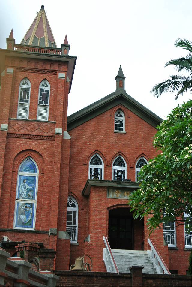 回去的时候准备乖乖德沿着大路走以免浪费时间,我们沿着中正路到文化路拐进了马偕街,这不是本意,因为人太多了那天,为了避开人群只能朝人少的地方走,反正方向对就可以了嘛。半路上看到一群人在马路上拍照,一看是一个教堂,挺漂亮的就去看看了。教堂旁边有一个纪念馆,里面是这个教堂的起源,然后我们就被传教了(此处省略1000字)反正最后回到了中正路,还了车往捷运站走,街上人越来越多,跳舞的舞龙的什么都有。