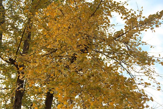 帽子峰景区,最为出名的就是其中的黄金大道,一条笔直的水泥路,两边整齐地种着银杏树,放眼望去,黄色向远处延伸。我想,如果没有路上那些密密麻麻的人,会以为自己是置身欧洲了吧。