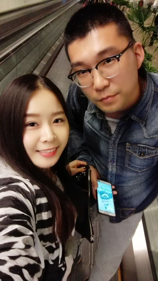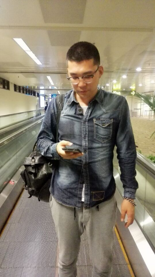 我们出发了,因为是晚上12点10份的飞机,老公困了还要配合我拍照,实属不易,呵呵T3新航出发。