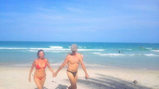去苏梅岛一定要去差汶海滩,那里景色很美,人不多,我们通常都是下午过去,租两个躺椅还有遮阳伞(人民币大概40元)可以坐一下午,老公更喜欢下海,那边有海浪,他喜欢海浪过来拍在身上的感觉,我一般和我老公下去玩耍半个小时就会上来补次防晒,那边的太阳很厉害。(两个人一起下海也没有关系,东西放在沙滩上也不会丢)传一些图片给大家。