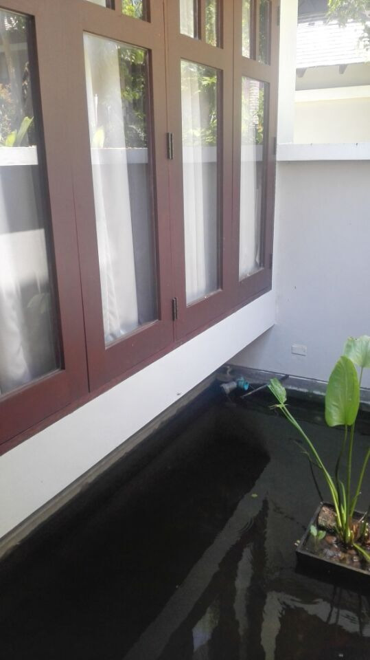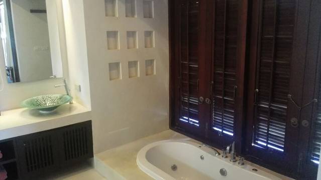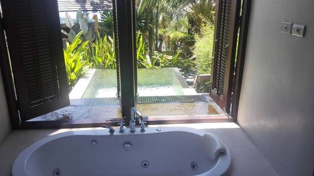 浴池旁边窗户打开,可以看到私家泳池,感觉很不错