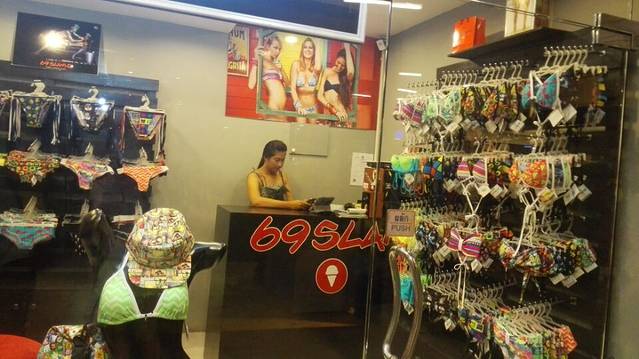 那里有好多比基尼店铺,女孩子们看了会疯狂