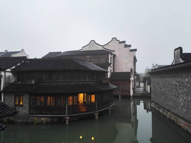 水是乌镇的灵魂,一切景致皆应水而生,水阁上三面有窗,凭窗可尽览河中倒影。