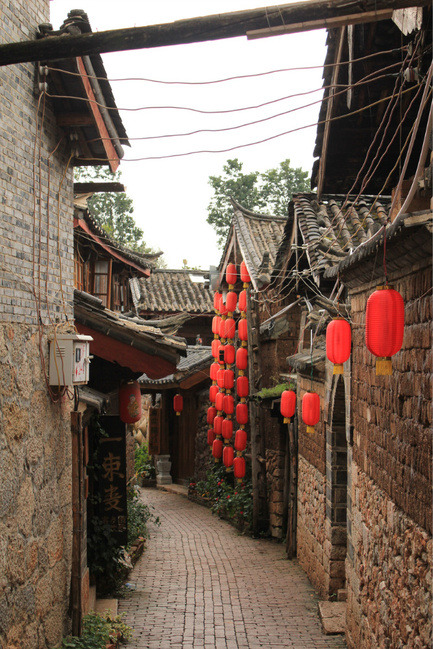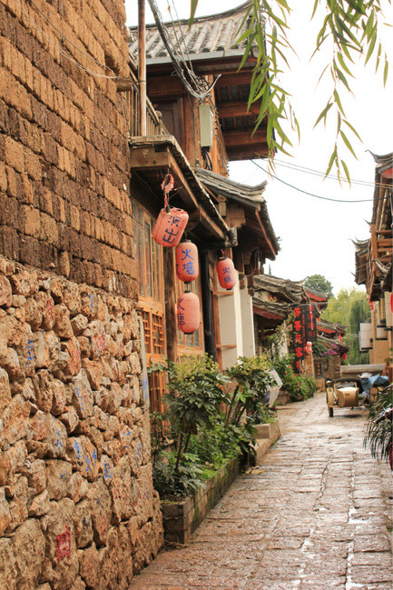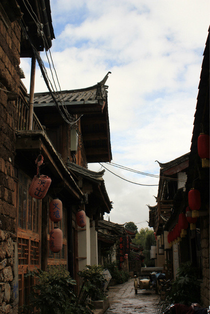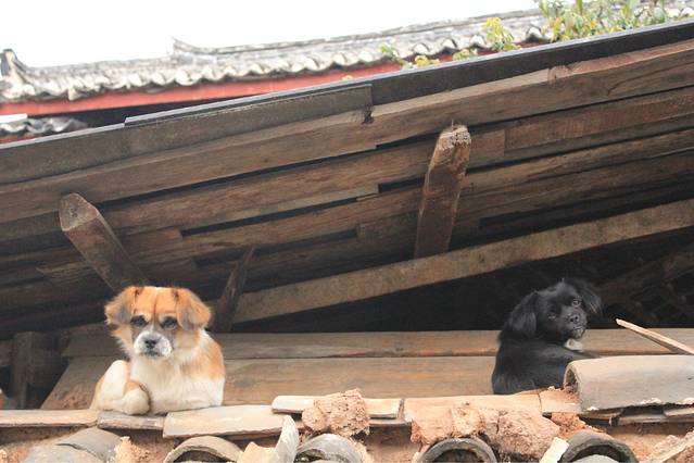 丽江的青石板路,承载着历史的厚重,一条条向外延伸,对于外人来说,只能用阡陌交通来形容了。我就这样迷失在这座古城里面,秉着走哪算哪的态度,却意外的发现了普贤寺,虔诚的走近寺庙,和尚正在清扫寺院,看着游客进来,悦耳的晨钟敲响,每一个佛像菩萨前,我都燃了三炷香以表诚意。由于是佛教重地,我也没有拍照留念,倒是出门的那座庭院吸引了我的注意力。土坯黄的庭院叙述这这百年的历史,墙边木架上,发现两只淡定的小狗,丝毫没有恶意的望着我渐行渐远的背影......